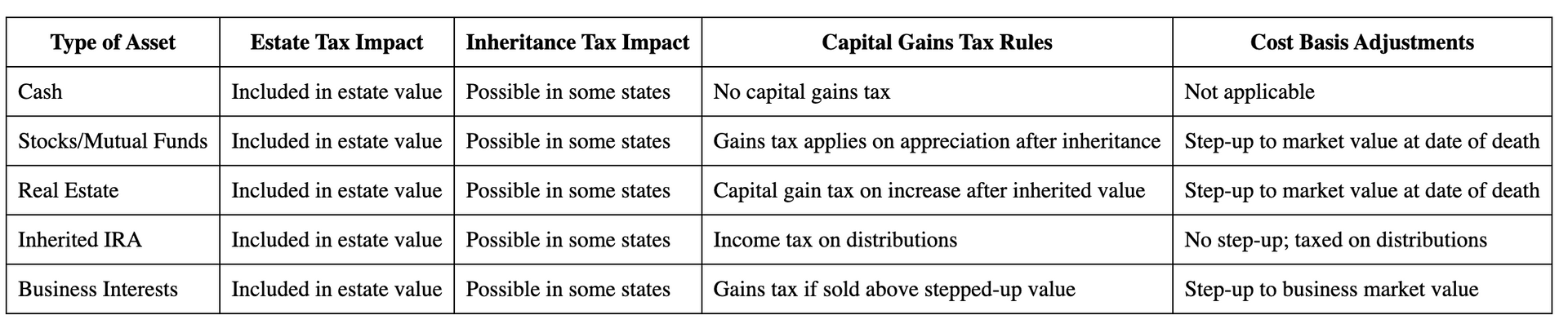 Table: Tax Considerations for Inherited Assets—Estate Tax, Inheritance Tax, and Capital Gains Tax